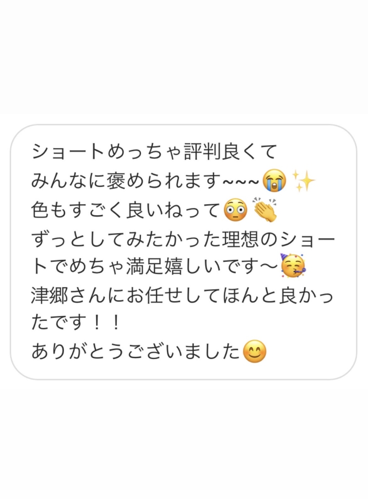 自然なツヤと丸みのあるキレイな髪質のショートヘアに