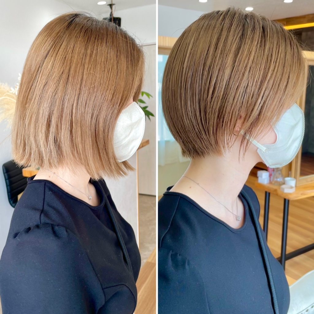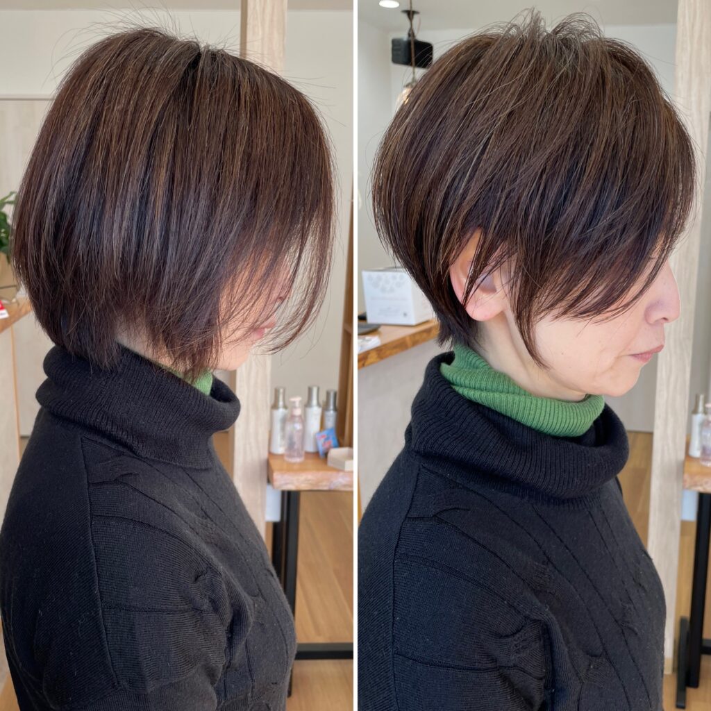 - えり足はキュッと、後頭部はふんわりした丸みのあるショートヘア